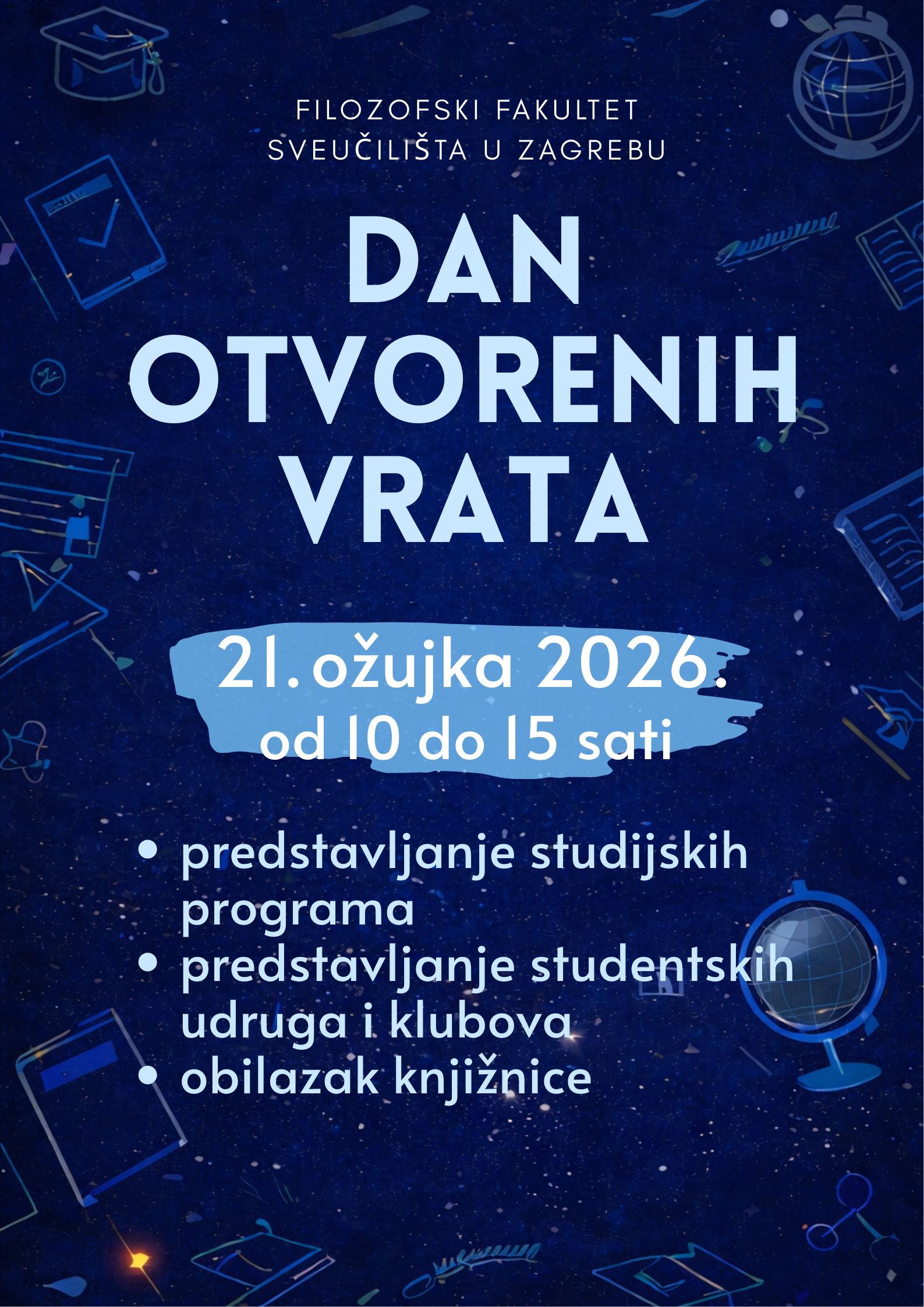 U subotu, 21. ožujka 2026. održat će se Dan otvorenih vrata Filozofskog fakulteta Sveučilišta u Zagrebu.